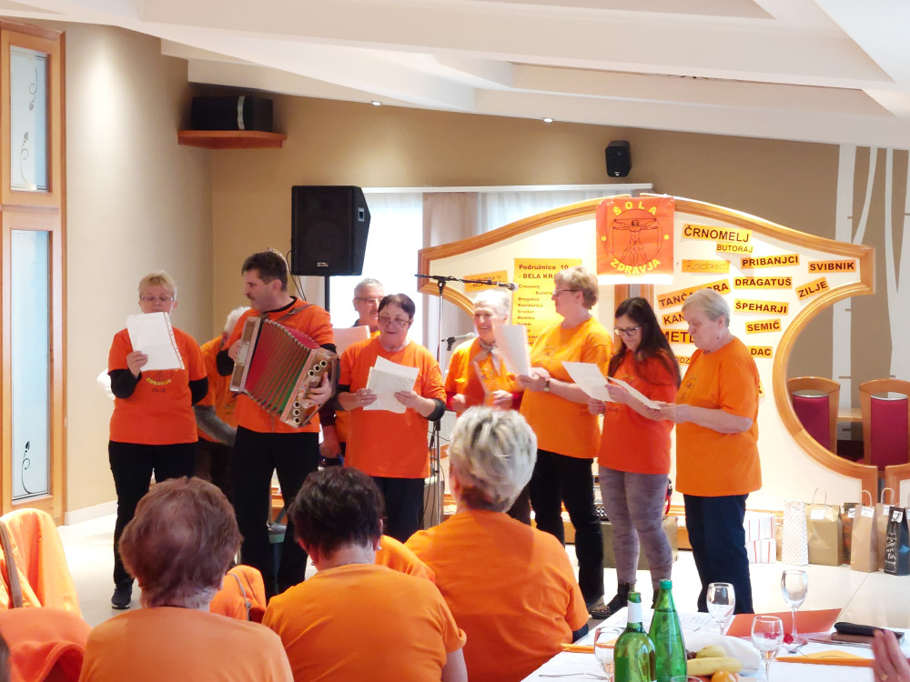 Na srečanju so se predstavile belokranjske skupine Društva Šola zdravja. Novoustanovljene skupine v letošnjem letu so se predstavile s svojo himno. To sta skupini Zilje in Svibnik. Skupina Semič iz »šokarije« vsako leto nasmeji do solz letos je prikazala nemi skeč z obrazložitvijo, ker se med našo jutranjo vadbo ne sme klepetati. Člani skupin iz občine Metlika in občine Črnomelj se na odru izkazujejo v različnih nastopih, kjer plešejo, pojejo in recitirajo, s čimer izražajo svojo ustvarjalnost, umetniški talent in predanost zdravemu načinu življenja. Ob tem ni le pomembno sodelovanje, temveč tudi spodbujanje telesne aktivnosti, kar je osnovna dejavnost našega društva.