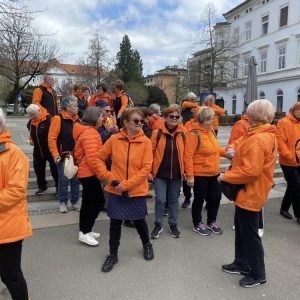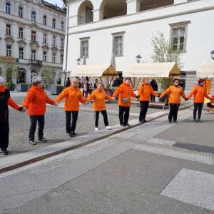 “DŠZMariborske skupine na Trgu svobode na stojnici propagandni material razdeli in v oranžnem valu na trgu pokažemo Mariboru kaj vsako jutro delamo mi! 1000gibov naredimo, v družbi zapojemo in se veselimo, tako bolj zdravo se živi, tabletka skoraj potrebna ni, zdravnik zeleni recept lahko opusti, to je razlog, da pridružiš se še ti!