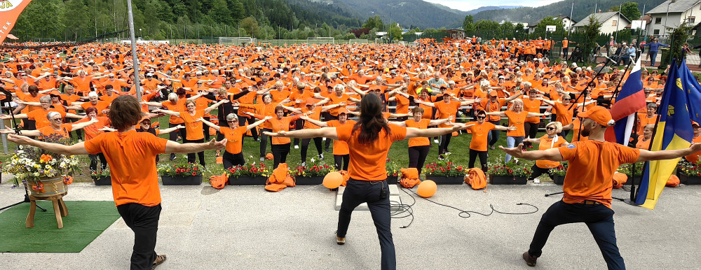 Med udeleženci lahko vidite precej oranžne barve, saj je naše društvo vključeno v sodelovanje s Športno unijo Slovenije v projektu “Aktivno staranje”.