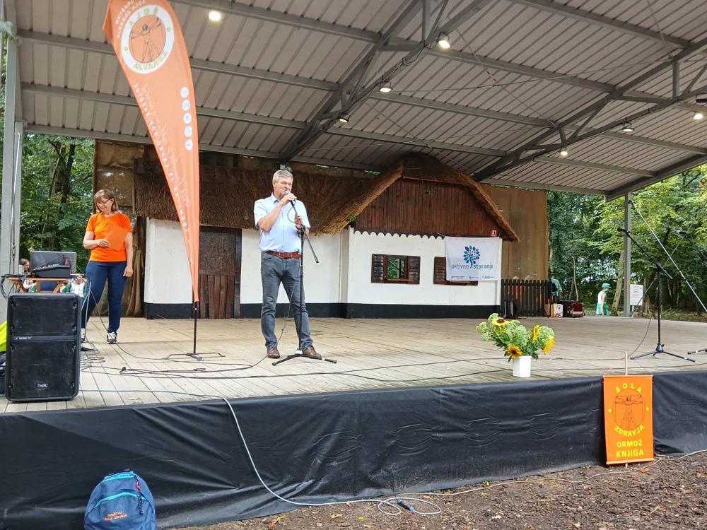 Po uvodnem razgibanju s 1000 gibi je vse prisotne nagovoril podžupan občine Beltinci, g. Roman Činč. Izrazil je veselje, da se srečanje odvija prav v Beltincih, saj so park in okolica beltinskega gradu idealen kraj za različna doživetja tako posameznikov kot skupin.