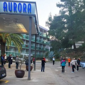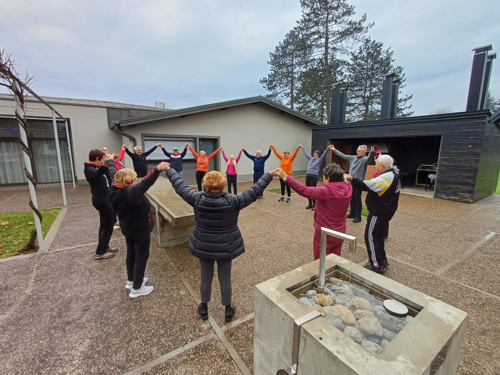 Tudi na počitnicah se dan začne z gibanjem! Člani mengeške skupine Šole zdravja se te dni razvajajo na terapevtskem oddihu v Kulaših, kjer pa seveda ne pozabijo na jutranjo vadbo 1000 gibov.