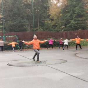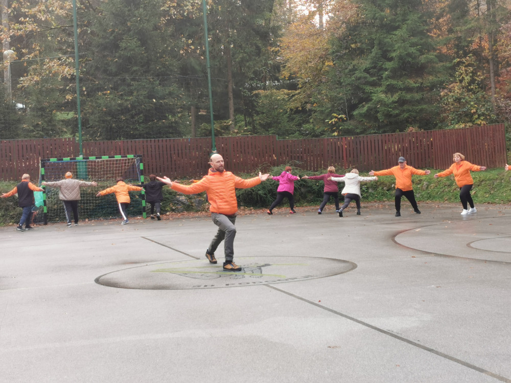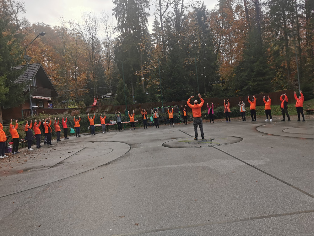 Po pozdravnem nagovoru vodje Šole zdravja Podgorje ge. Ivice Vrtačič, smo pod vodstvom Andraža vsi skupaj izvedli vseh 1000 gibov, dodali še nekaj vaj za moč in razgibavanje zaključili, kot vedno, s pesmijo.