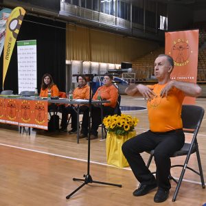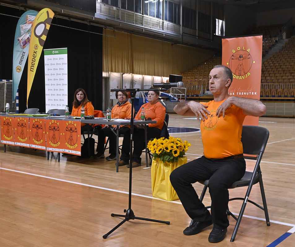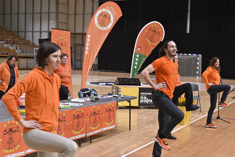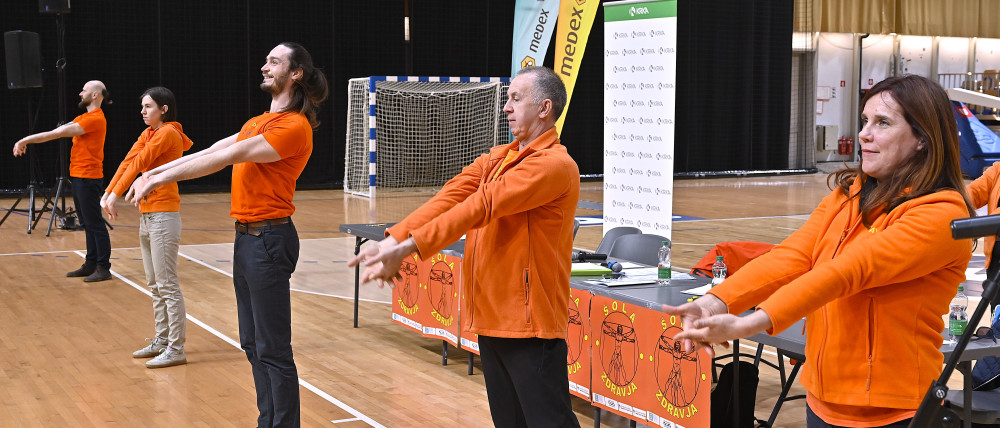 Dogodek smo nato nadaljevali tako, kot se za Društvo Šola zdravja spodobi – s skrajšano vadbo po Metodi 1000 gibov, ki je povezala vse prisotne v skupnem ritmu. Vadbo je vodil kineziolog Simon Jurmić, skupaj s strokovnim kadrom društva (Andraž Purger, Eva Jeza, predsednica Zdenka Kavčič ter dr. Grishin).