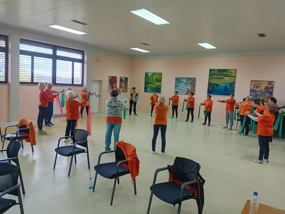 Poseben poudarek je bil na praktičnem delu, kjer so udeleženci aktivno preizkušali vaje metode +300 gibov. Spoznali so pravilno zaporedje vaj, pomen dihanja, ustrezno intenzivnost ter uporabo elastičnega traku. Kljub navidezni enostavnosti vaj so udeleženci izpostavili, da te zahtevajo veliko zbranosti in pravilno izvedbo, pri čemer jih je kineziolog Simon ves čas strokovno usmerjal, popravljal in spodbujal.